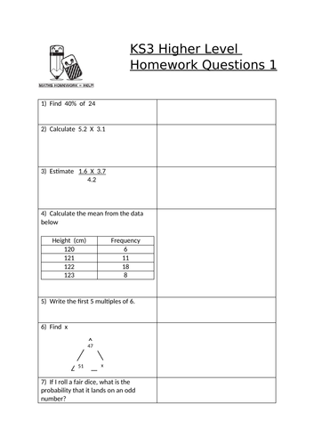 High School Math Worksheets | Study.com You can quickly find the topic you need and print out the worksheets to use in class or to assign as a homework. Our high school math worksheets cover a range of high school math topics from...
