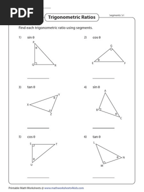 Printable Math Tests, Worksheets, and Activities - K-12 Explore topics such as trigonometric ratios and functions, Sine and Cosine Law, trigonometric identities, the unit circle, and radians and degrees with these worksheets. Pythagorean Theorem; Periodic Trigonometric Functions; Converting Between Degree and Radian Measure; Law of Sines; Trigonometry Calculator Practice (sin, cos, tan) Math Worksheet Categories - Easy Teacher Worksheets This is the largest collection of free math worksheets complete with answer keys. We have just over 18,000 printable pages just in this section alone. If there is any other free site that is remotely close, we haven't seen it. We start with topics as simple as basic counting and advance to high level trigonometry. We expect to have a fully functional college and business math section … Trigonometric Ratios - Math Worksheets 4 Kids Find all the three primary trigonometric ratios for the mentioned angle. 1). 2). 3). 4). Printable Math Worksheets @ pages